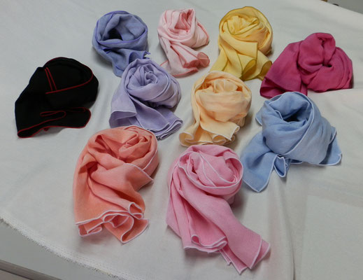 弊社スカーフ等で少しの縮が気にならない製品では普通洗濯で大丈夫です。