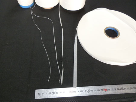 材料は木材パルプ・マニラ麻・が主です。さらにマニラ麻とパルプを混ぜた物その混率も様々です。そのほか機械引き和紙はメーカーにより厚みが変わります。こんなにも種類があります。和紙糸もデニールやテックス・番手で表す事もできますが坪量何グラム・スリット巾何ミリと言われることが多いように思いますこれにマニラ麻・針葉樹・古紙など原材料も言います。例マニラ麻坪量15gの和紙と言う具合です