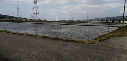 弊社工場近くの田んぼではゴールデンウイークに田植えをする